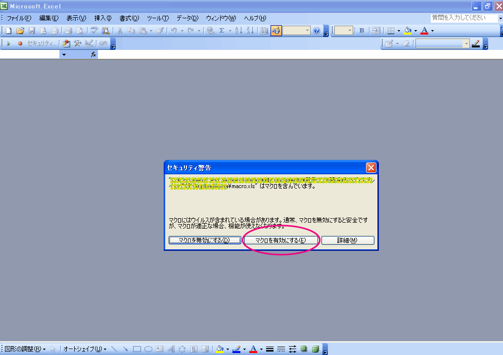 すると、以下のような画面が現れるので、「マクロを有効にする」を選択します。