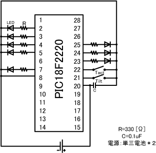 マイコンは、PIC18LF2220を使用しました。このマイコンを使用した理由は、AD変換ポートが多いことと、製作者が使い慣れている、という2点です。