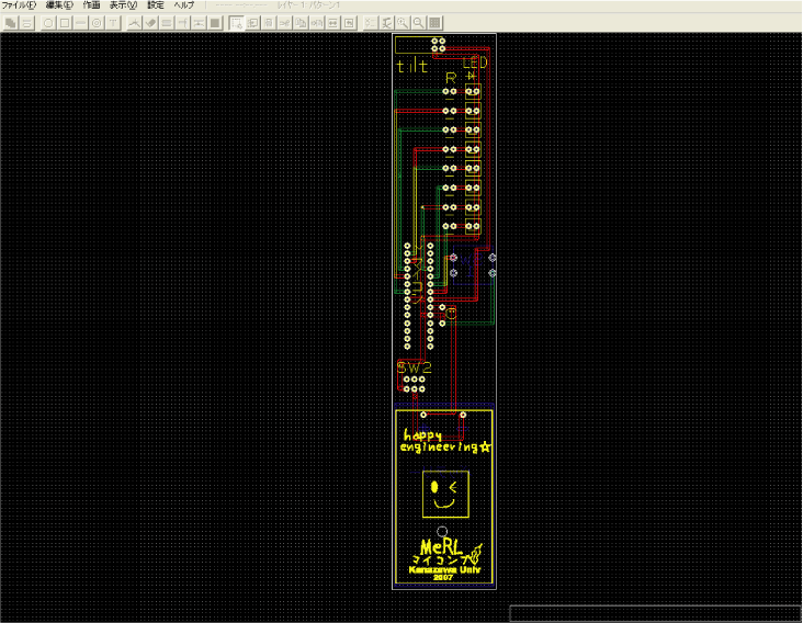 この基板は、設計図をPCBEという無料エディタで作成し、P板.comというプリント基板を製造する会社に発注しました。
