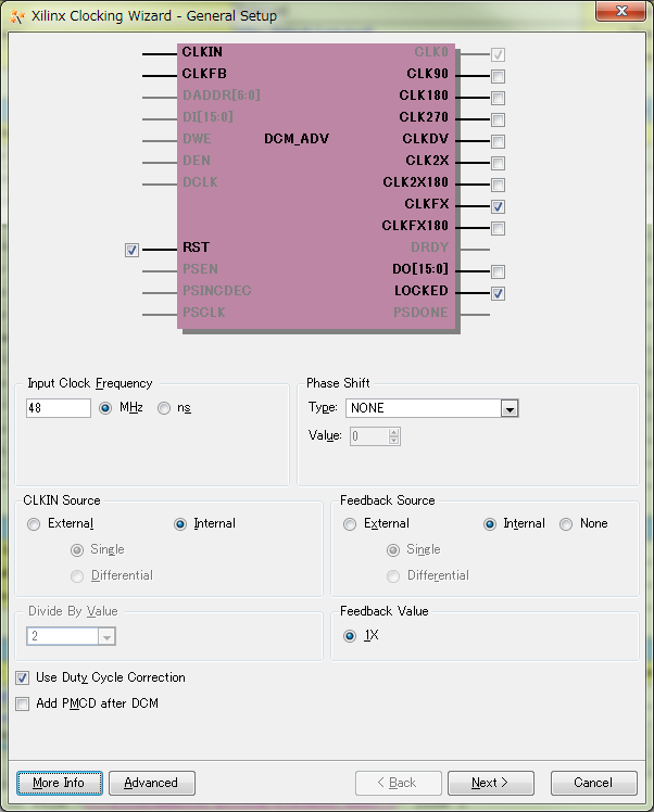 Spartan-3¤ÎDCM»ÅÍͽñ : http://japan.xilinx.com/support/documentation/application_notes/j_xapp462.pdf CLKIN¤òIBUFG¥°¥í¡¼¥Ð¥ë¥Ð¥Ã¥Õ¥¡ÆþÎÏ¥×¥ê¥ß¥Æ¥£¥Ö¤ËÀܳ¤¹¤ë¾ì¹ç¤Ï[External]¡¢¤½¤Î¾¤Î¥½¡¼¥¹¤ËÀܳ¤¹¤ë¾ì¹ç¤Ï[Internal]