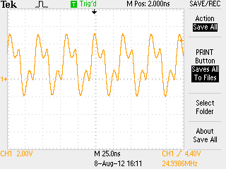 DCM¤Ç25MHz¤Î¥¯¥í¥Ã¥¯¤ÎÀ¸À®¤Ï¤Ç¤¤¿¤¬¡¢¥ª¥·¥í¤Ç¸«¤ë¤ÈÇÈ·Á¤¬¤À¤¤¤ÖÏĤó¤Ç¤¤¤¿¡£